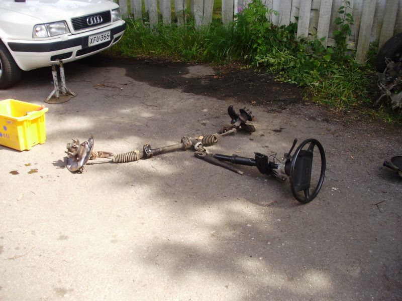 Oheisessa kuvassa on Volvon ohjauslaitteisto, johon kuuluu: ratti, ohjaustanko, ohjausnivelet- ja tangot.